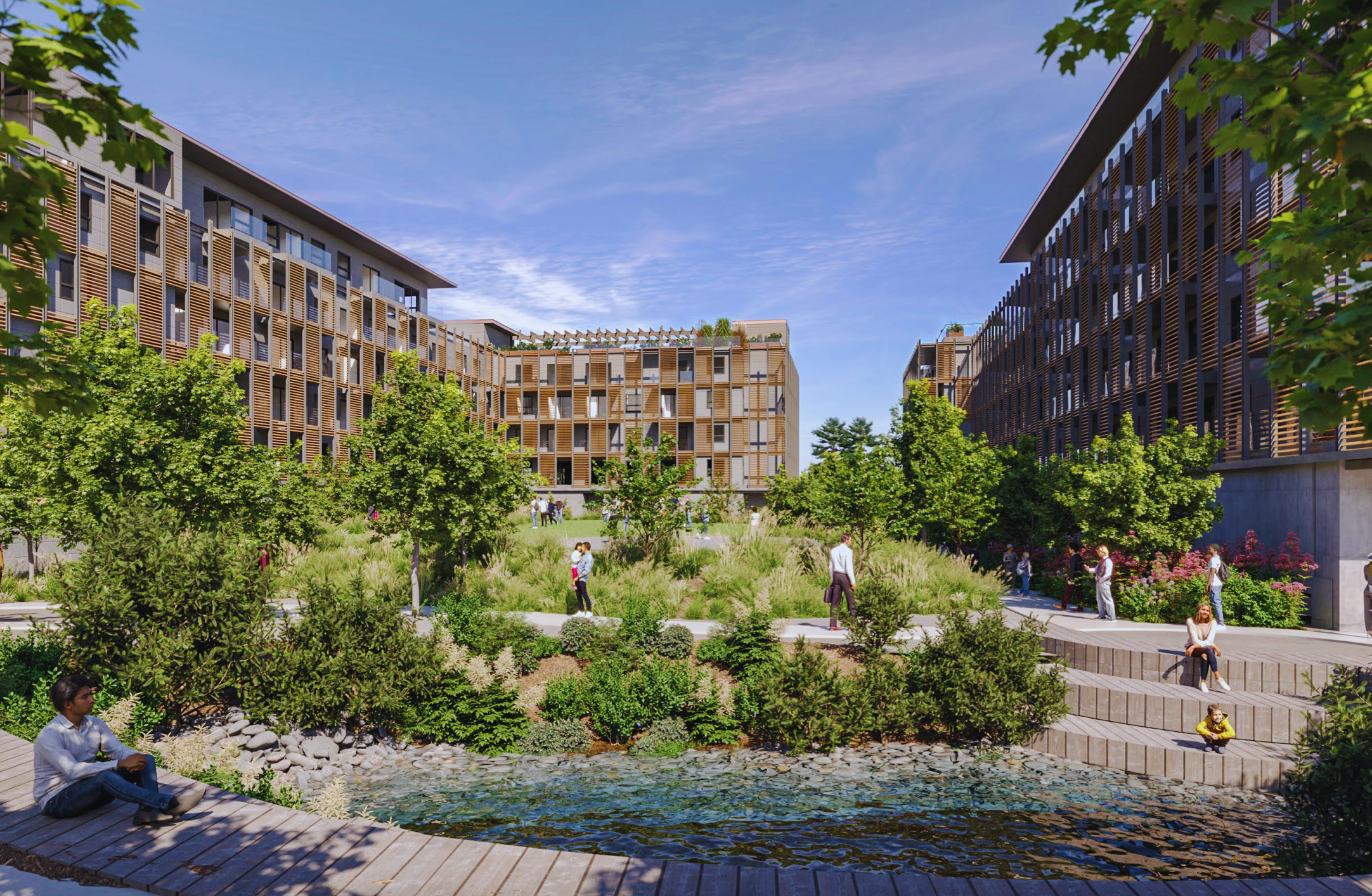 The development’s design caters to family and community-oriented living, incorporating essential amenities like an on-site childcare center, multi-purpose community gathering spaces, and an alternative-learning school, all of which elevate the property’s community value and functionality. These facilities are integrated around a central, open courtyard, enhancing recreational and communal spaces.
